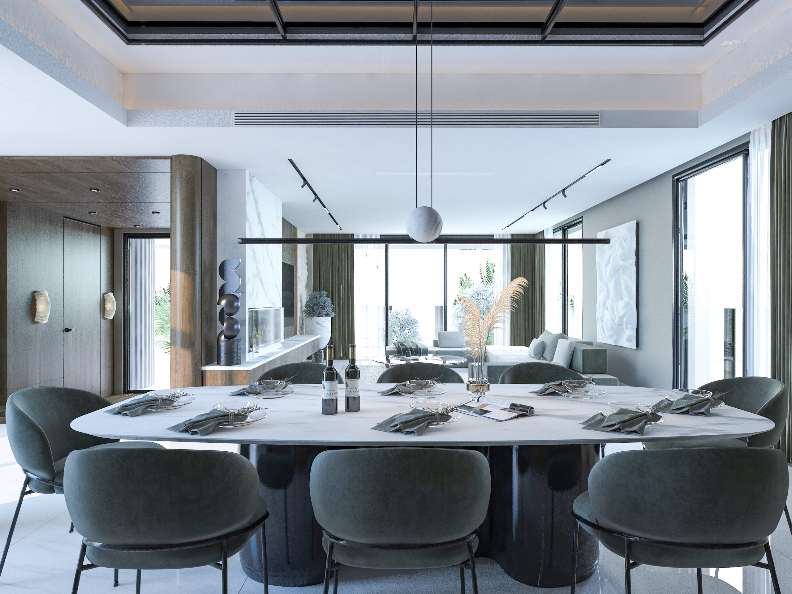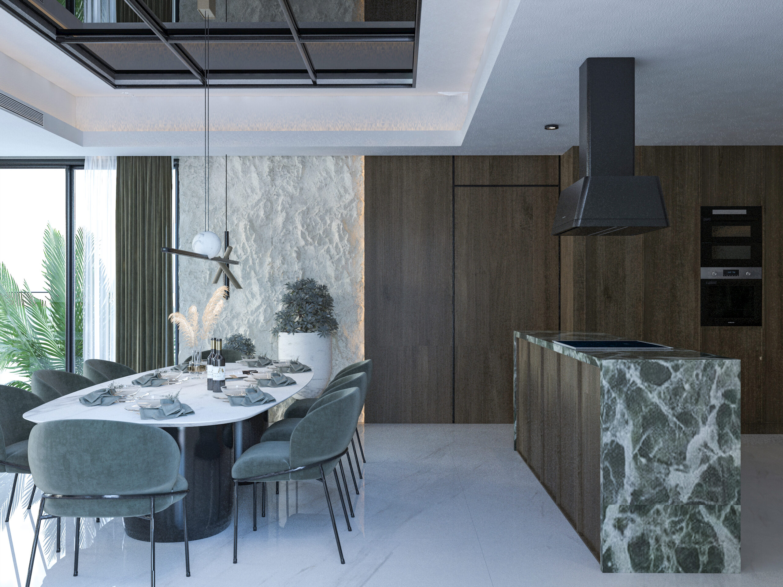 Doğadan ilham alan renk paleti, seçkin mobilya tercihleri ve dengeli detay kullanımı ile iç mekânlar yalnızca yaşanan alanlar değil; deneyimlenen bir yaşam kurgusuna dönüşür.