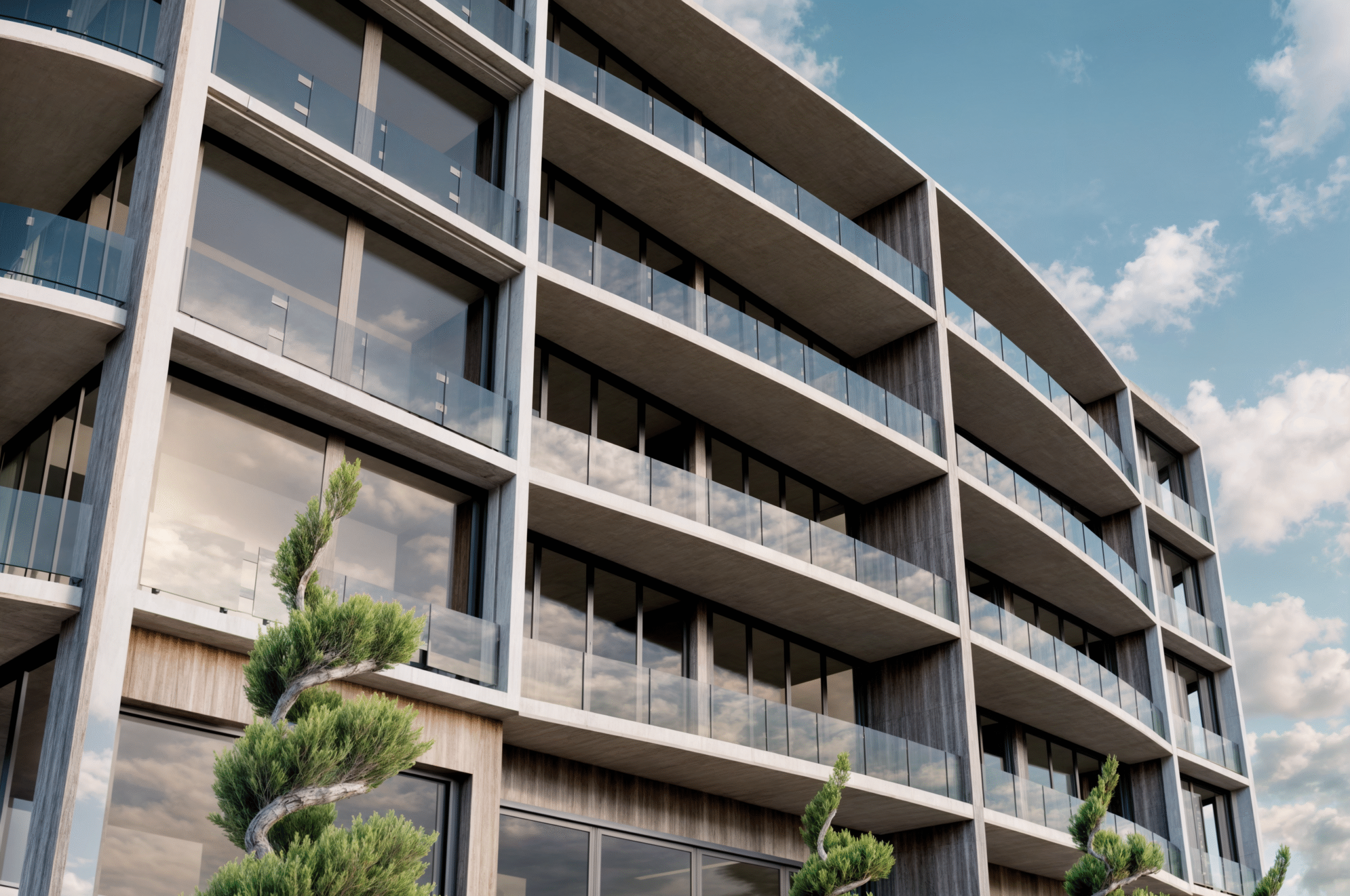 Geniş açıklıklar, ritmik balkon düzeni ve kontrollü cephe kurgusu sayesinde gün ışığı ve doğal hava akışı yaşam alanlarının bir parçası haline getirilmiştir. Bu yaklaşım, yalnızca görsel değil; aynı zamanda konfor odaklı bir mekânsal deneyim sunar.