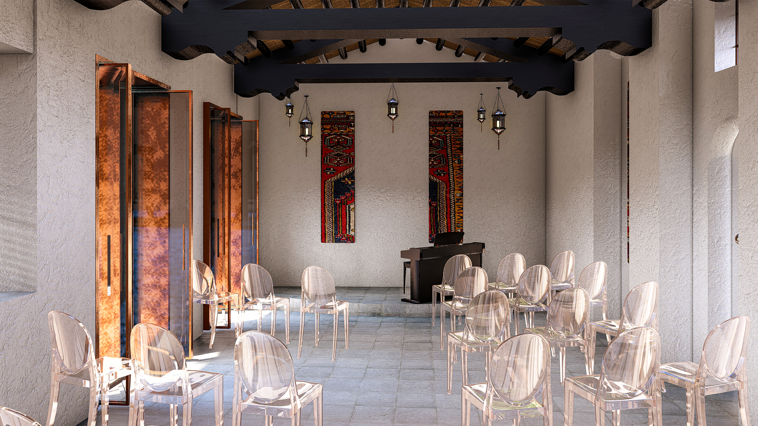 Tasarım sürecinde, Kıbrıs’a özgü mimari dil; kemerli açıklıklar, geniş saçaklar, doğal taş yüzeyler ve ahşap detaylar üzerinden yeniden yorumlandı. Özellikle saçaklı ev tipolojisi, mekânın hem gölge hem de geçiş alanlarını tanımlayan önemli bir unsur olarak ele alındı. Bu yaklaşım, Lefkoşa’nın iklimine ve sosyal yaşam alışkanlıklarına doğrudan referans verir.