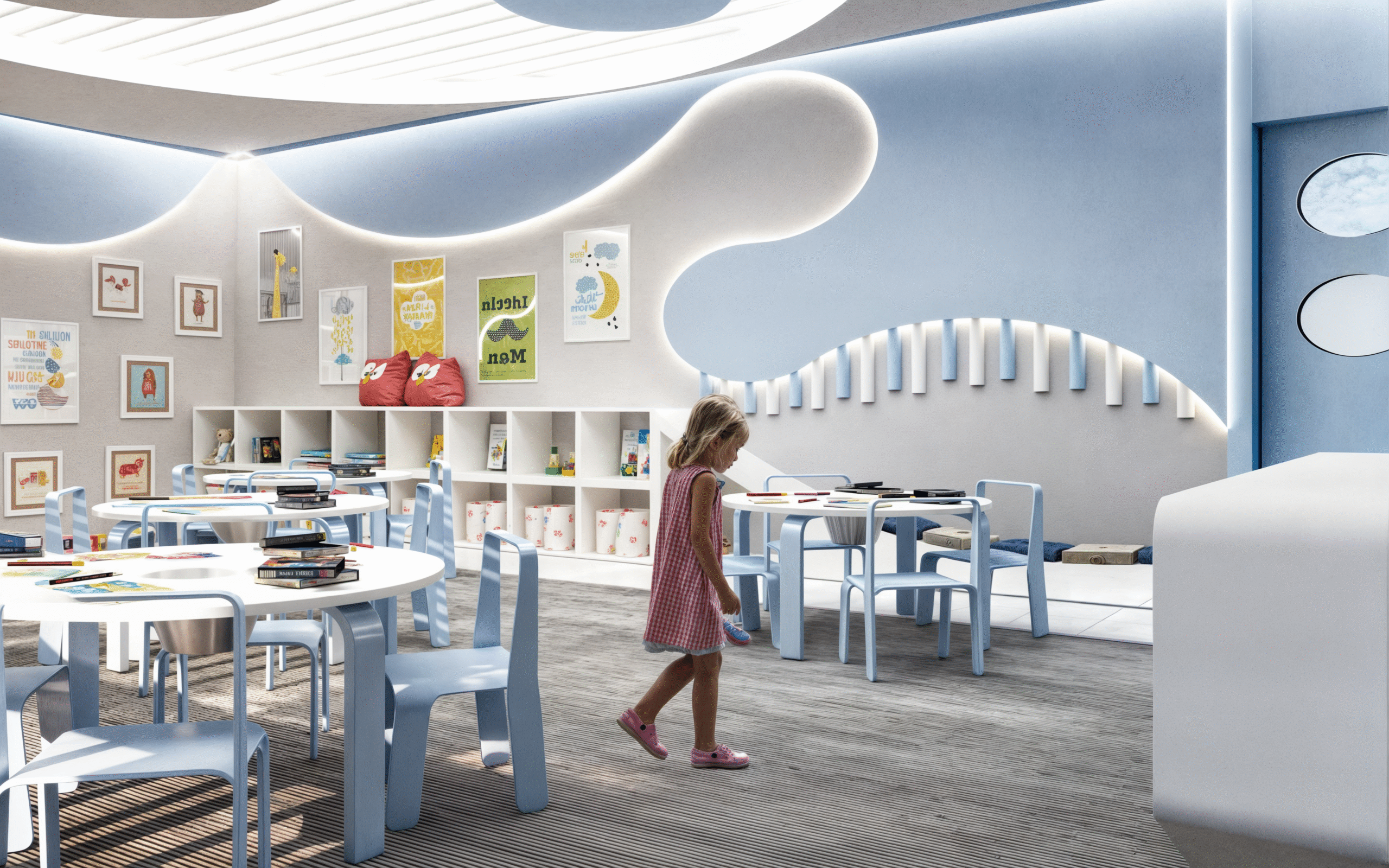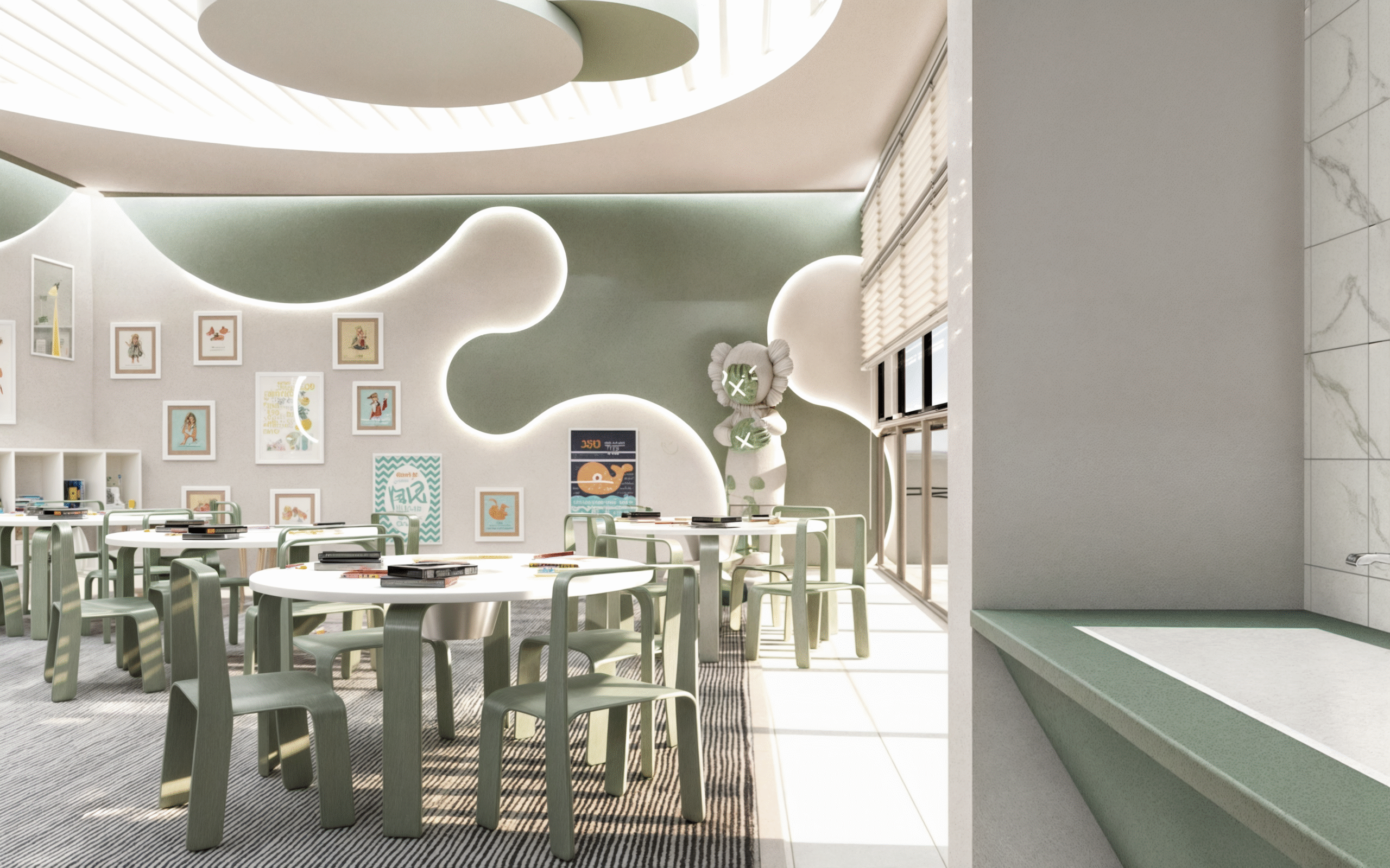 Doğal ışık kullanımı, malzeme seçimleri ve yüzey ilişkileri; mekânın algısını güçlendirecek şekilde dengeli bir bütünlük içerisinde ele alındı. Yumuşak geçişler, sade formlar ve kontrollü renk kullanımı ile çocuklar için güvenli ve huzurlu bir atmosfer oluşturuldu.       Projenin önemli parçalarından biri olan sinema alanı ise, çocukların yalnızca izlediği değil; deneyimlediği bir mekân olarak tasarlandı. Işık kontrolü, oturma düzeni ve akustik denge ile bu alan, duygusal gelişimi destekleyen ortak bir deneyim alanına dönüştürüldü.   Sonuç olarak, her mekânın kendi kimliğine sahip olduğu; dengeli, ilham verici ve kullanıcı odaklı bir eğitim ortamı oluşturuldu. Bu proje ile, iç mimarlığın eğitim yapılarındaki rolü; yalnızca fiziksel bir düzenleme değil, aynı zamanda öğrenme deneyimini şekillendiren bir tasarım aracı olarak ele alınmıştır.